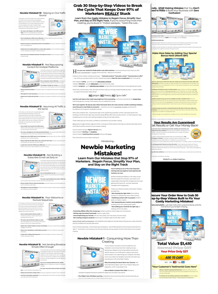 Newbie Marketing Mistakes is a content-packed video course that breaks down the most common mistakes beginners make and the exact strategies to avoid them.