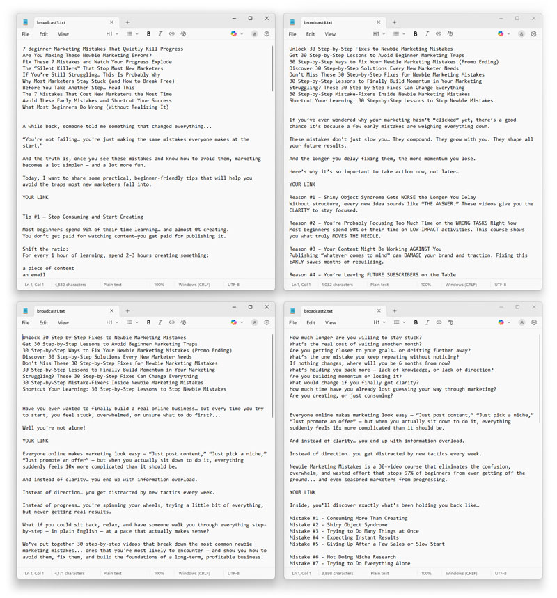 Each email is professionally written to speak directly to the beginner marketer’s frustrations and motivations, making it effortless for you to plug these into your autoresponder and generate sales on autopilot. No writing, no guessing, no struggle — just copy, paste, send, and profit.